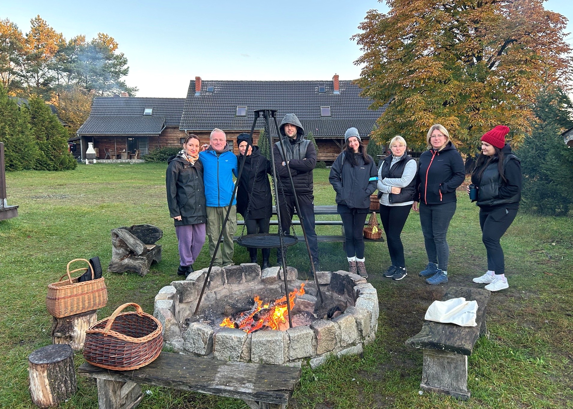 Po grzybobraniu, z koszykami pełnymi leśnych skarbów, udaliśmy się do pobliskiej agroturystyki, gdzie mogliśmy ogrzać się przy ognisku oraz zjeść domowy posiłek.